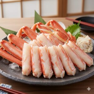 カニの脚の殻が完全に剥かれた状態のものです。加熱すると身がふっくらと膨らみ、カニしゃぶやバター焼きに最適です。最も手軽にカニの身を堪能できるタイプです。